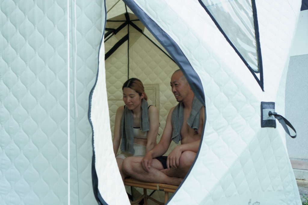 気の済むまで、整い切るまで、テントサウナ、水風呂、インフィニティチェアを繰り返してください。火が弱くなったら薪を1本ずつ追加して、お好みの温度でテントサウナをお楽しみください。